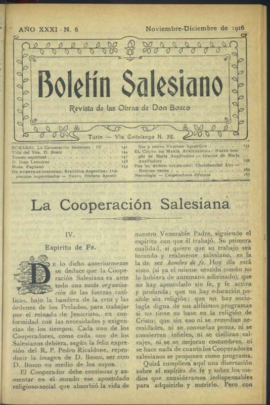 SUMARIO. La Cooperacióai Salesiana - IV . . . 141