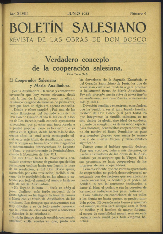 Boletín Salesiano. Junio 1933