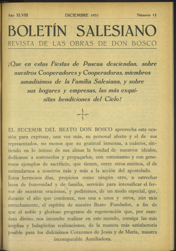 A l saludar su advenim iento, Boletín Salesiano dedica nuevam ente estas humildes